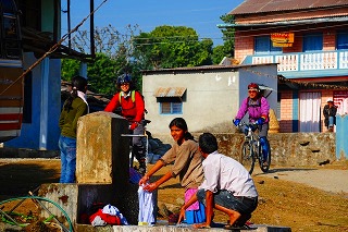![]() 村の水場。 こんなところを「ナマステ〜」といいながらマウンテンバイクでお邪魔。 |