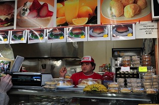 ![]() 翌日のランチ用に、パン屋へ。 ブラジリアンサンドイッチの作り方を教えてもらう。 |