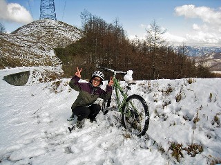 | 久しぶりの春の上野村ツアー、新緑にはまだちょっと早い季節ですが、春の匂いのする気持ちよい季節・・・のはずが、今年は天候不順で直前に降雪が!でもお天気は◎!青い空と白い雪。こんな風景の中走れることってなかなかありません。本当にきれいでした。。。上野村はやっぱり奥深い! |