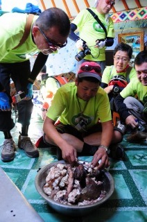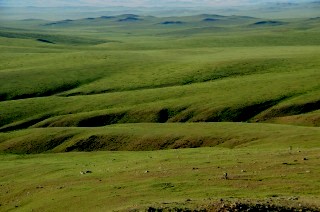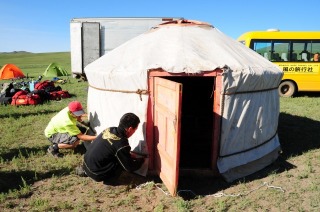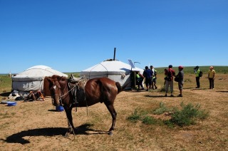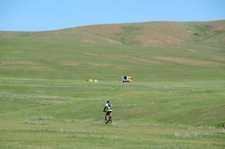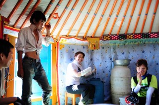 ![]() といいつつ、数十分後にいたのはゲル。 ゲルを見かけたら必ず立ち寄る。これが遊牧民のルールなのです。 これが草原の情報通信の仕組みであり、互いの絆を深め合うことだと見た。 |