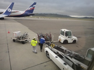 ![]() 風の旅行社の≪成田-ウランバートル≫チャーター便で来た 各グループがここに結集。 自転車ツアーのTシャツが目立っていました! |