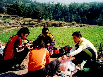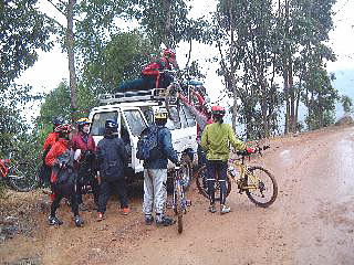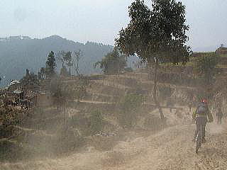 ![]() MTBツアー会社、ダウン・ティル・ダスク前にて。 いよいよネパールの地を走り出すのだ 朝もやが晴れかかったカトマンズ郊外。 シングルトラックで民家をつないでいく ![]() 外で食べるランチがうまいんだ |
