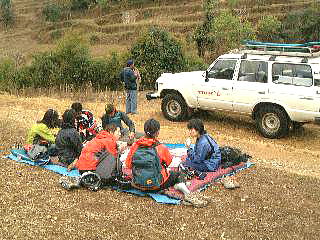 ランチはカトマンズから運んできたサンドイッチ。 村はずれでのどかなひととき |