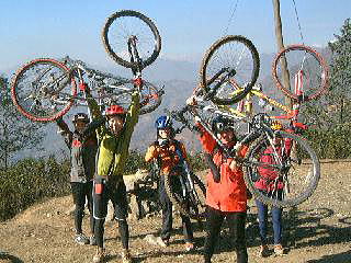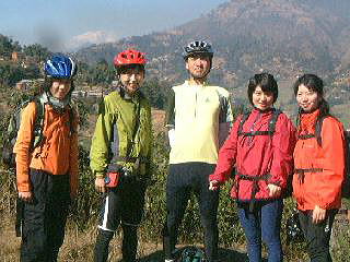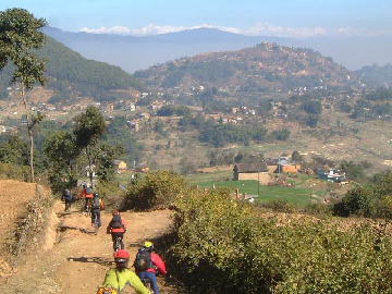 本日はヒマラヤをドカ〜ンと眺めるのが必須命題。ということで郊外の尼寺までヒルクライム。お茶と昼ご飯をご馳走になりました 【絶対にヒマラヤを見るのだ!】 というわけで、1月3日のカトマンズ近郊シングルトラックライドでは、ヒマラヤドカ〜ンが至上命題。ガイド氏と話し合ってそんなルートを決定。ガイド氏は「このあたりは朝、霧が立ち込めて、気温が上がる11時くらいに晴れ上がる。出発を遅めにすれば、ヒルクライムして振り返ると山々が連なって見える」とアドバイス。まさにそんな感じでしたよね! |
