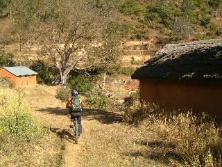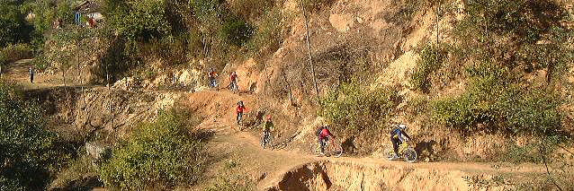 みなさんを見送った翌朝から、世界でもっとも美しいといわれるランタン谷のトレッキングに出かけました。歩きの旅もまたいいものです。氷河がググッと迫り来るところまで行けるのは、歩きならではの魅力かなと。 で、気になったのは、通りがかる人の、ほとんどすべてが客引きだということ。ネパール人とすれ違うとかならず「今日はどこまで行く?」、「あの村に行ったらここに泊まれ、OK?」と迫る。うんざりしてきたので「NO」というといつまでもついてくる。3歳くらいの子供が「Namasute, you stay ××lodge」といってくるのにも驚いた。ランタンの谷筋に親戚が散らばっているからなのだが、外国人=お金という図式があまりにもいやらしかった(景色がスバラシイだけに)。ネパールの代表的なトレッキングルートというと、それほど多くはないので、外国人が集中し、それに依存することになるのは仕方がないのだが。 その点、MTBで旅をしているときは、子供たちが純粋に、珍しそうにして追いかけてくる。もう、その目つきが違うのだ。MTB、それから外国人を見るのが初めてとはいわないが、とにかく珍しいので好奇心に駆り立てられて走り出し、いつまでもナマステ〜、とかハロ〜って叫んでくれる。学校の前を通りがかるときは声援の嵐だし、ときには100m以上も離れた川の対岸から、姿は見えなくとも叫ぶ声だけが聞こえてくることもある。確かにトレッキングしながら仰ぎ見る山々はスンバラシイ。これには異論はない。でも、観光客がどっさり訪れるところよりも、そうでないところの方が、絶対に人との出会いは印象的だと思う。MTBってとっても人のことが印象に残るものなんだな〜。 だからMTBっていいんだよな〜、って思ってしまうのであった。 |