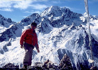 やったぁ〜3 そして軽く登り返すと、それまでに見えなかったヒマラヤが顔を出しました。これ、喜びの表現です |